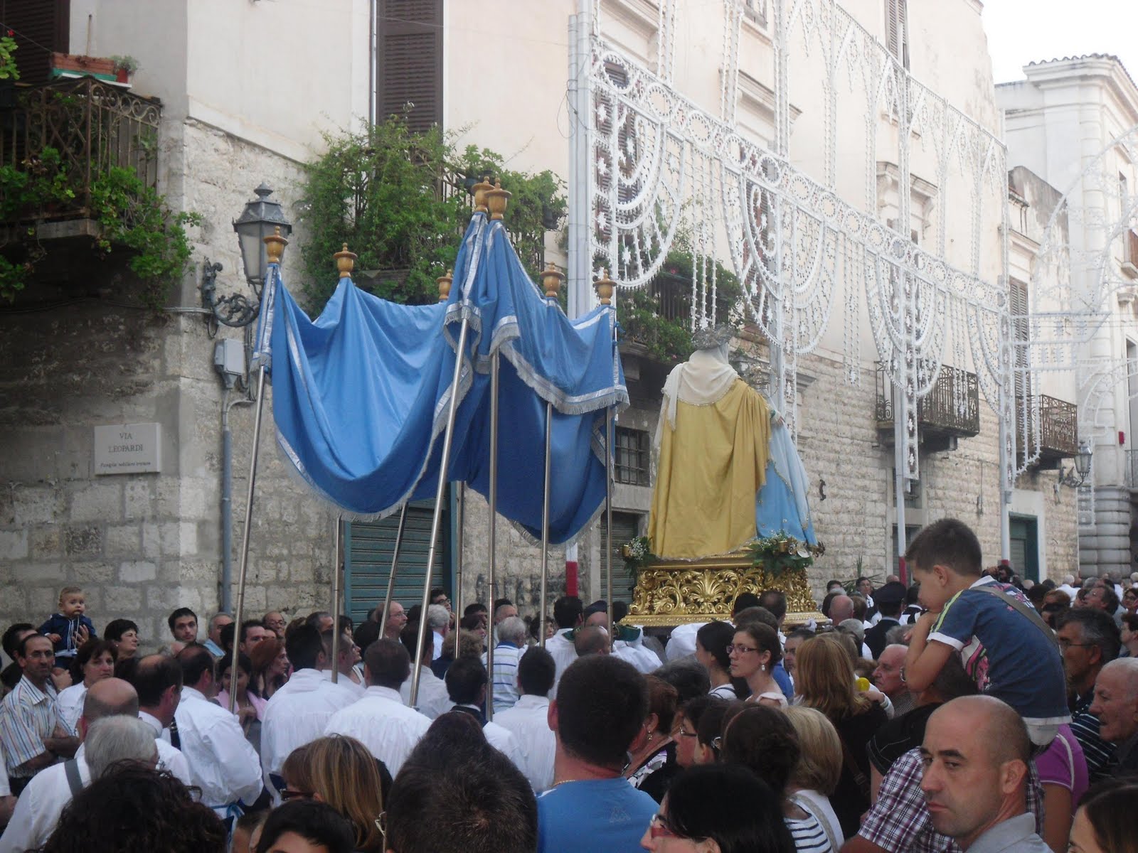 Lo scorso martedì 26 luglio, giorno della festività liturgica di Sant'Anna e san Gioacchino, a Trani si è svolta la processione del bel simulacro vestito di Sant'Anna e Maria Bambina curata dalla confraternita di Sant'Anna. La processione è iniziata verso le ore 19.30 ed è proseguita fino le 23.00 circa. Qui di seguito alcune foto della processione scattate all'uscita dalla chiesa di San Giovanni e in Corso Vittorio Emanuele II