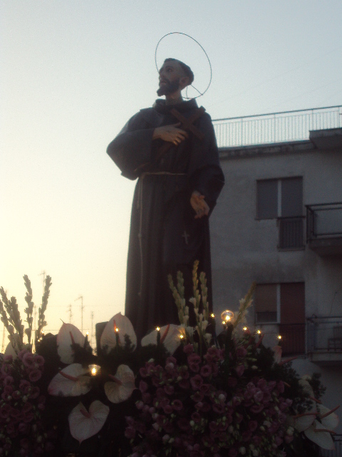Il 23 settembre Bitonto ha festeggiato uno dei santi più amati e invocati: S. Pio da Pietrelcina. Quest’anno, in particolare, si è ricordato il 10° anniversario dei festeggiamenti in suo onore tenuti a Bitonto, a cura dell’omonimo gruppo di preghiera e dei frati minori del Convento di S. Leone, che hanno organizzato un ricco programma di celebrazioni liturgiche e religiose: dopo la novena ( che nei primi 3 giorni si è svolta in 3 diverse zone della parrocchia, per rinsaldare il legame con tutto il quartiere) iniziata il 14, nella sera del 22 si è tenuta la fiaccolata per la commemorazione del Transito di S. Pio. Interessante e degno di rilievo è il Corteo storico sulla vita di S. Pio tenutosi mercoledì 21, giunto alla sua II edizione. I festeggiamenti sono culminati Venerdì , festa liturgica del Santo, con la processione che ha visto la partecipazione delle confraternite cittadine, le quali hanno accolto l’invito di un momento di fraternità e devozione verso il santo delle stimmate. Davanti all’immagine in legno d’Ortisei di S. Pio, realizzata nel 2001 viene portata in processione anche l’immagine di S. Francesco d’Assisi ,fondatore dell’Ordine dei Frati minori.